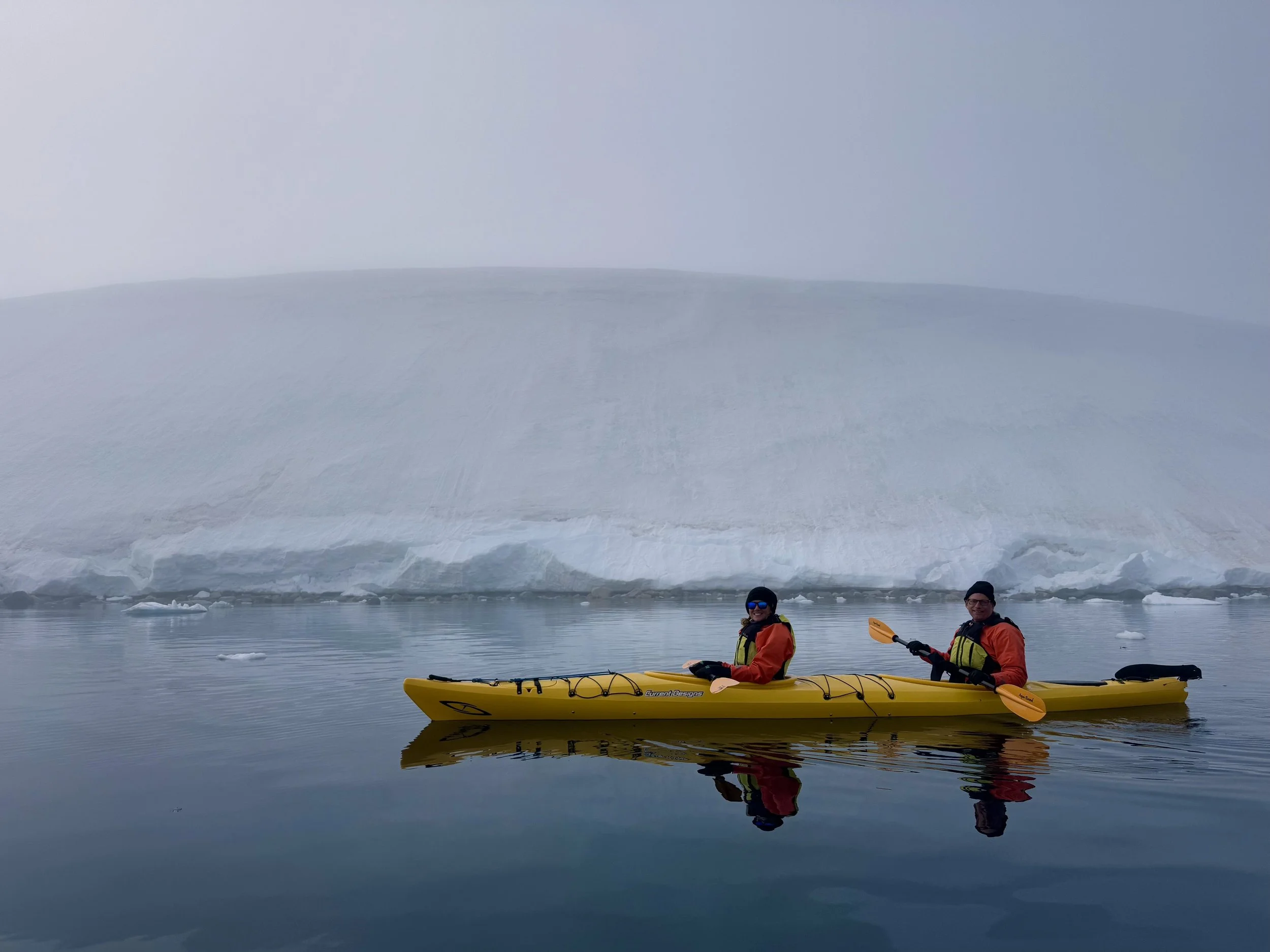 Your iphone or a point and shoot camera is plenty for the landscapes and capturing videos. A camera with a zoom is recommended for wildlife. It is pretty difficult to use fixed lenses so a versatile lens is best. Changing lenses out in snowy weather, splashing salt water or wind is never a good idea so if possible bringing 2 camera bodies is ideal, one for landscape one for wildlife. Lenses I recommend are 24-70 mm and 150 mm-+ for wildlife. Bring extra batteries as the cold does drain batteries quickly. Also be prepared with extra sd cards. on your person every day. One afternoon when the whales showed up, everyone filled up their sd cards in 1 hour. Excitement happens fast and with little to no warning. A go pro or similar is also a fun option to record some underwater footage. Drones are not allowed so no point in packing that along. A waterproof bag was also mandatory for all excursions. It should also be noted that whatever you bring with you on excursions must be carried at all times. At no time are you allowed to set anything down on the ground. You also aren’t allowed to squat down or lay on the ground to take photos. Monopods were allowed.
